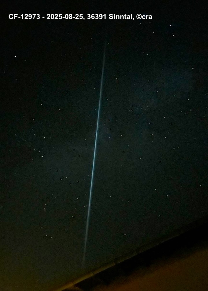 Der 2020 auf dem Jungfernflug der CZ-8 gestartete Satellit XJY-7) ("XJY-7 classified remote sensing technology test (~3t)"; siehe Post #40 in diesem Thread) ist am 16. Oktober 2025 über den Kanarischen Inseln verglüht. Vorher hatte die australische Firma HEO im Orbit Aufnahmen des Satelliten gemacht und dokumentiert, dass er sowohl über eine parabolische Radarantenne als auch zwei flache SAR-Antennen verfügte sowie starre nicht schwenkbare Sonnenzellenmodule: