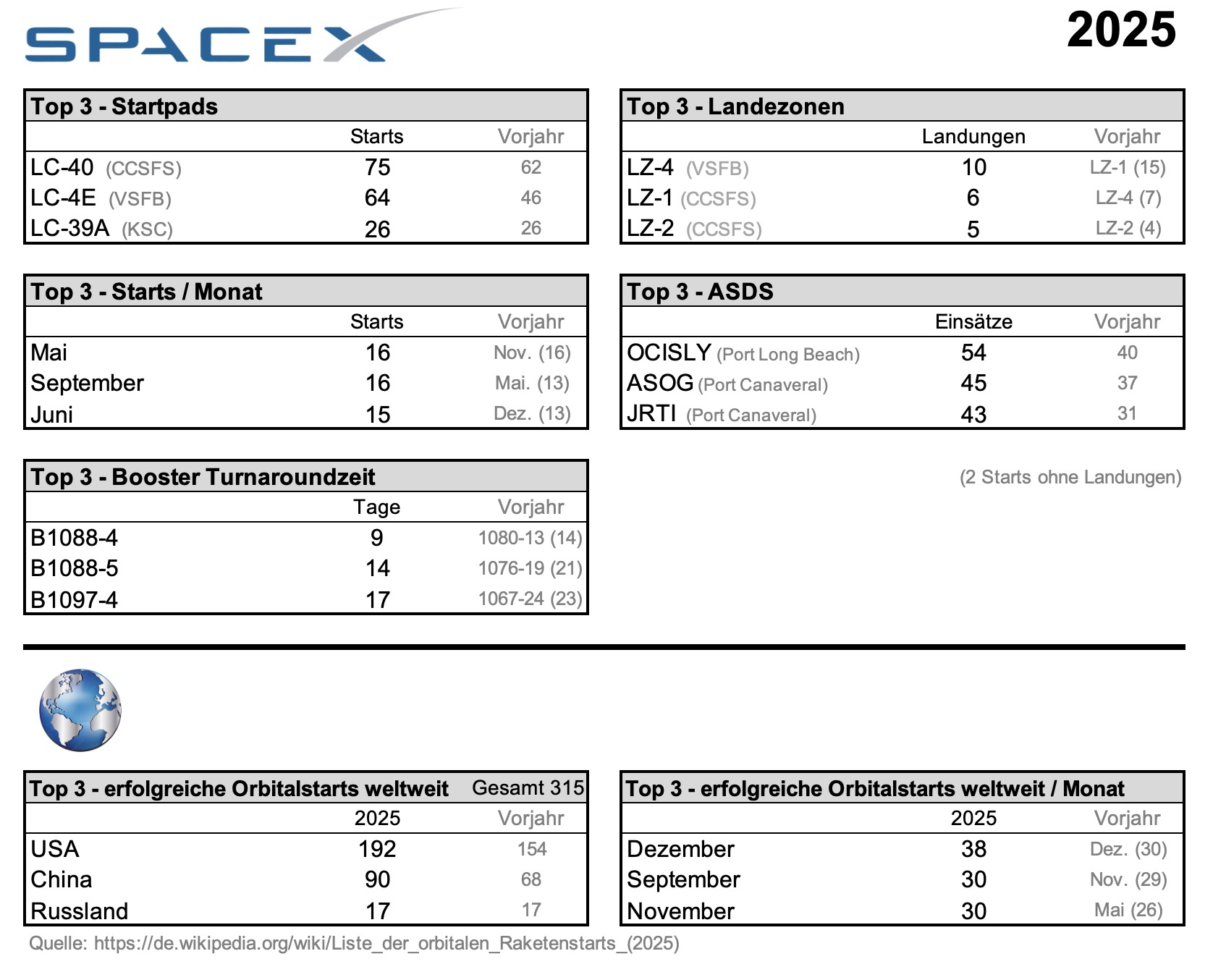 Re: Anzahl der SpaceX-Orbitalstarts 2025
