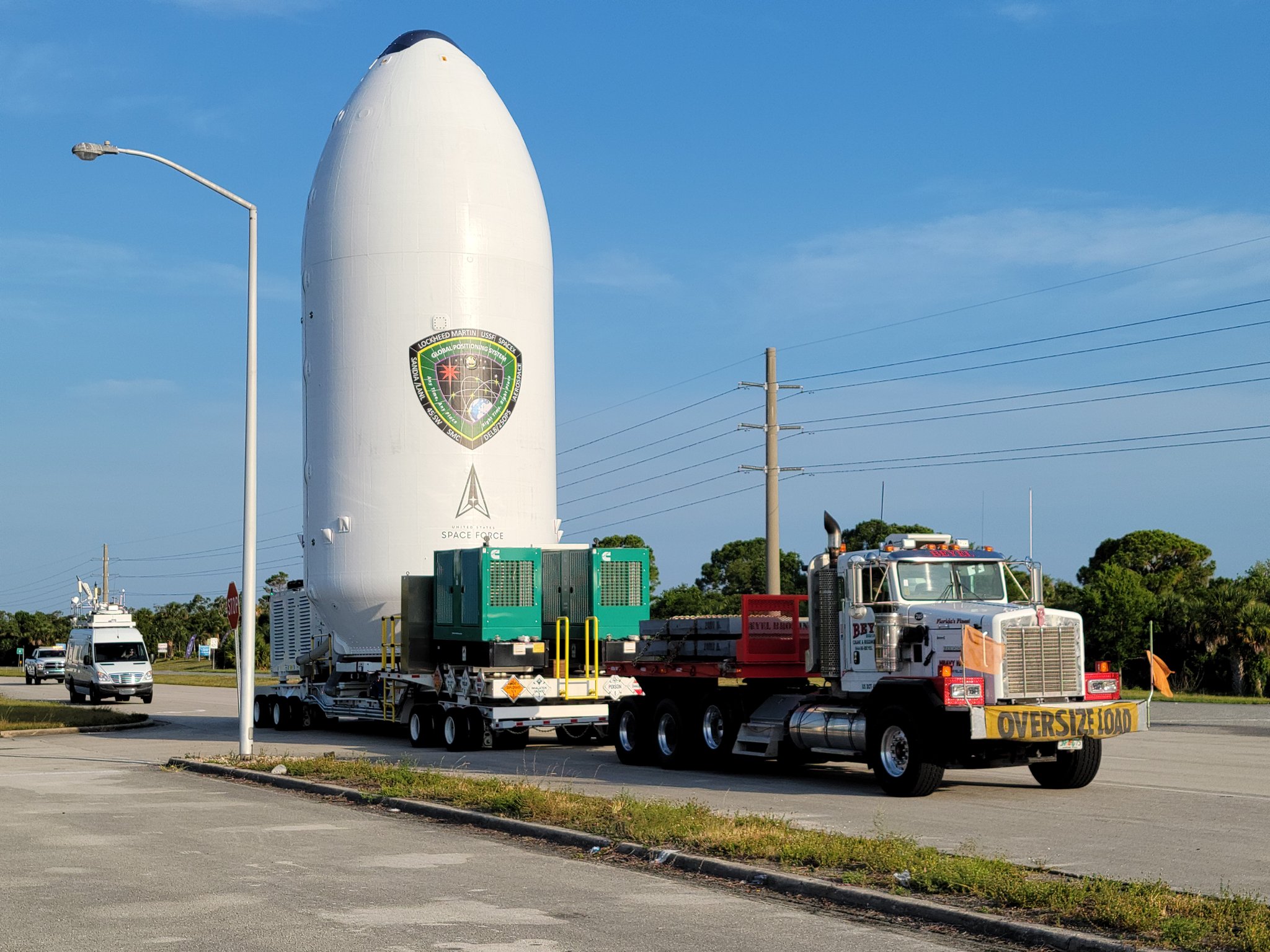 GPS 3 rollt zum SpaceX Integrationsgebäude.