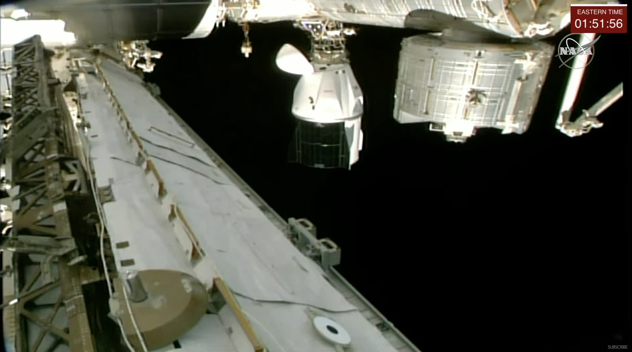 Die Kapsel wurde umgesetzt, um Platz zu machen für CRS-28 (Start geplant für 3. Juni), denn nur dann kann der Canadarm-2 die neuen Solarzellen ausladen.