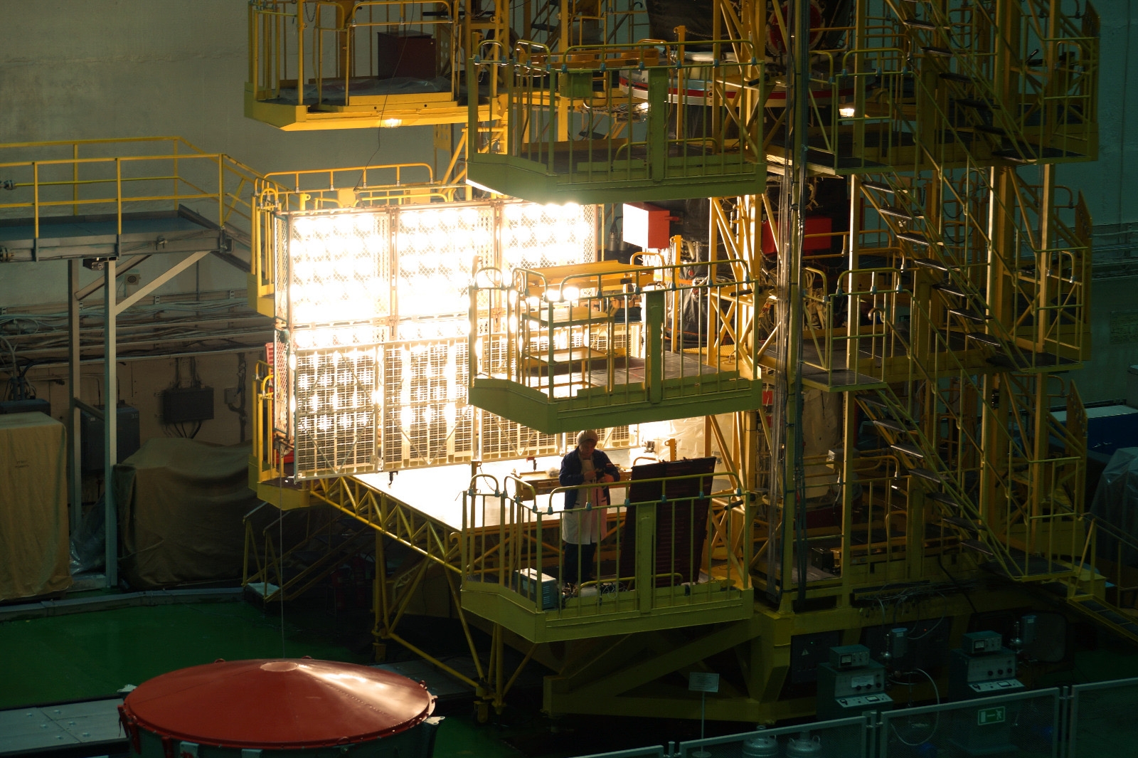 Auf dem Prüfstand werden die Paneele des Raumschiffs mehrere Minuten lang beleuchtet.