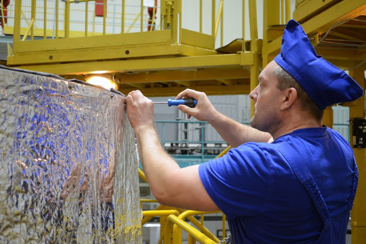 Vor der Abfahrt wurde das Frachtschiff Progress MS-33 einer Endkontrolle im Werk unterzogen: