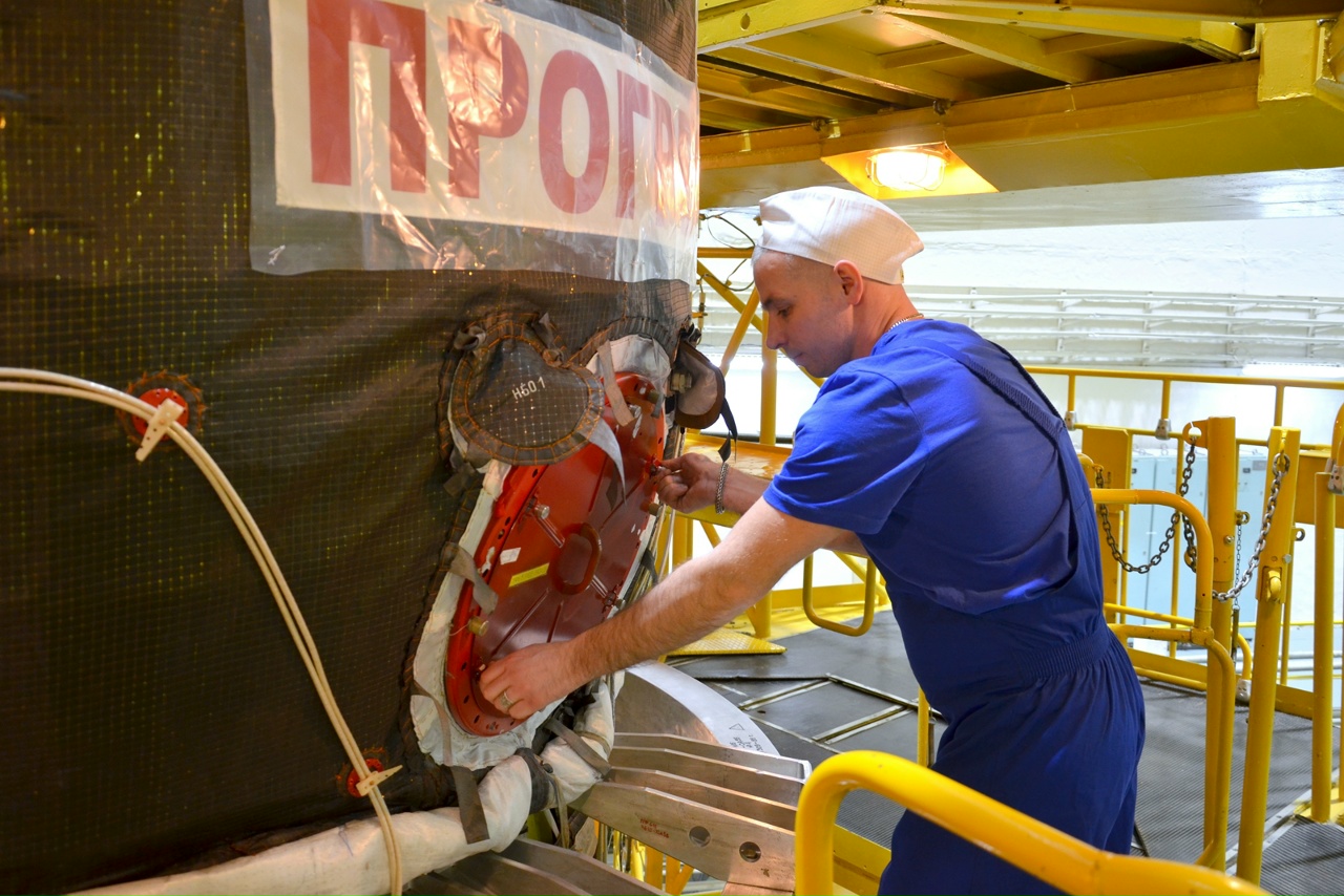 Die Kollegen der Filiale Energia/Baikonur inspizierten Progress MS-33 und stellten