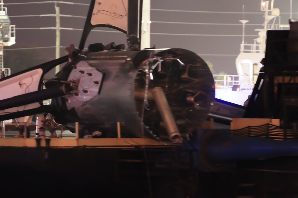 Ich nehme an, die Stufe ist beim Umkippen auf dem Deck geblieben. Man hat nur den oberen Teil abgesägt, da es zu sperrig war, mit einer liegenden Stufe zu manövrieren. Ich hoffe nur man hat vorher auch noch die tollen Titan-Gridfins abgeschraubt.