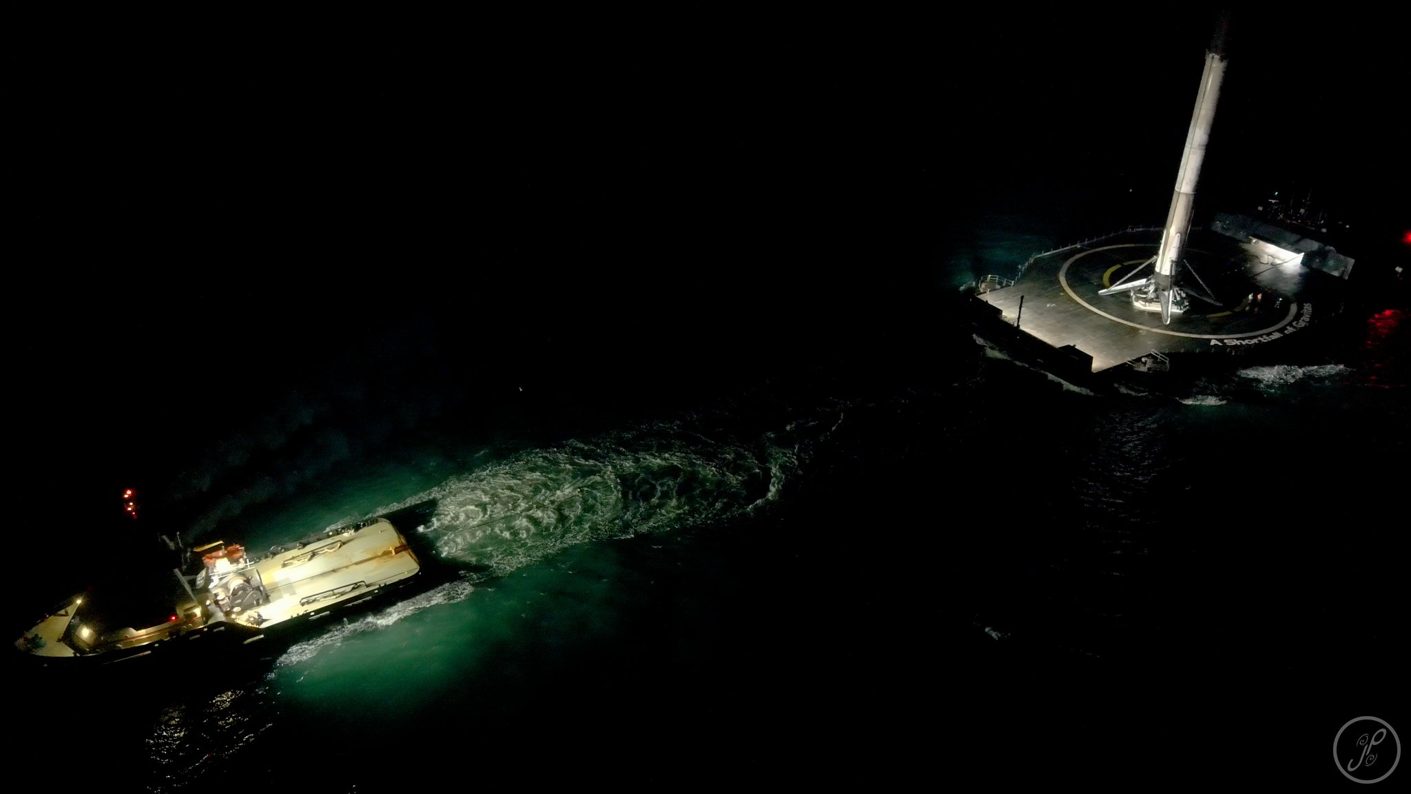 Da ist wieder zurück, Falcon 9 B1077 wieder im Hafen von Port Canaveral. Auch mal eine schöne Ansicht.