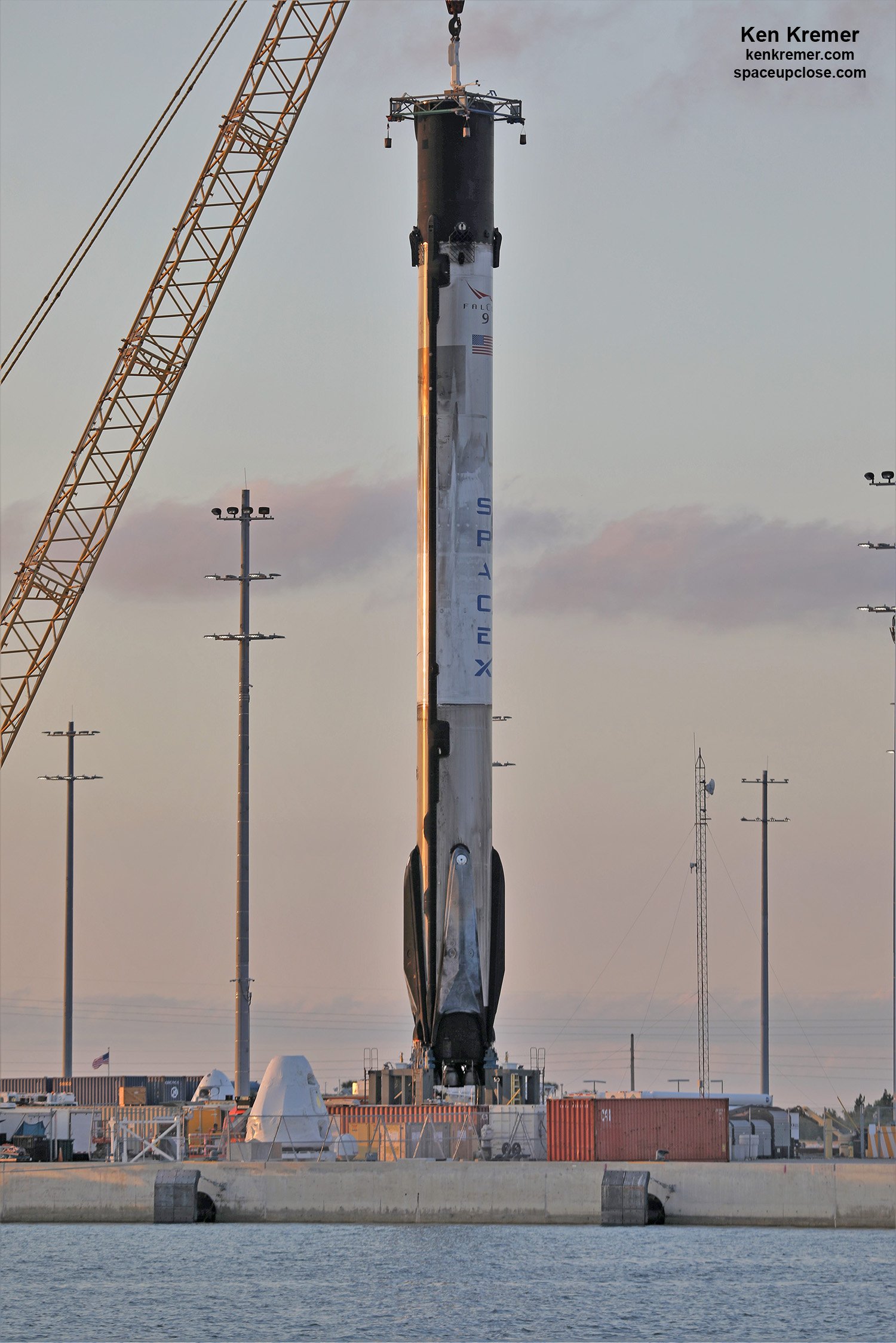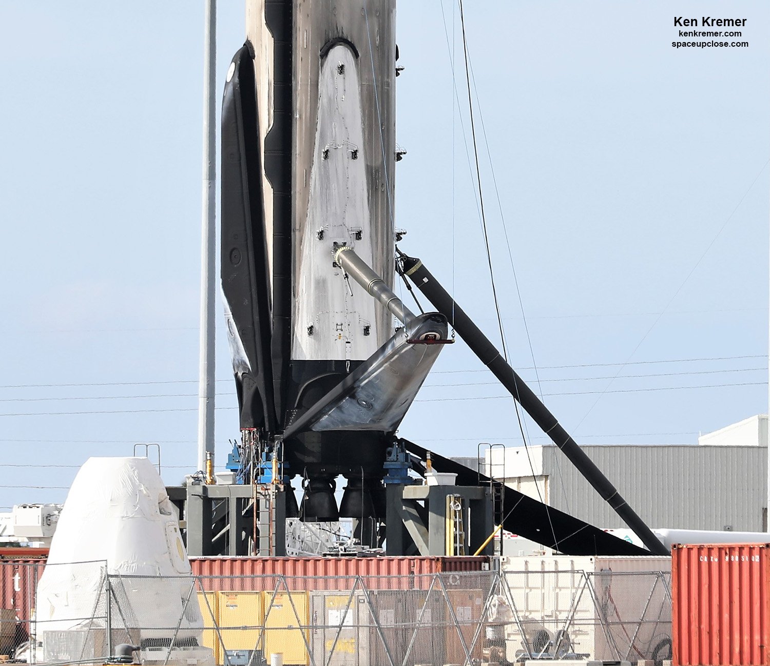 Die Erststufe der Dragon CRS-17 Mission (B1056.1) ist mittlerweile im Hafen angekommen und die Landebeine wurden zum ersten mal hochgeklappt, anstatt sie wie früher ab zuschrauben. Dies ist ja eines der neuen Features von Block 5 zur Beschleunigung der Wiederverwertung.