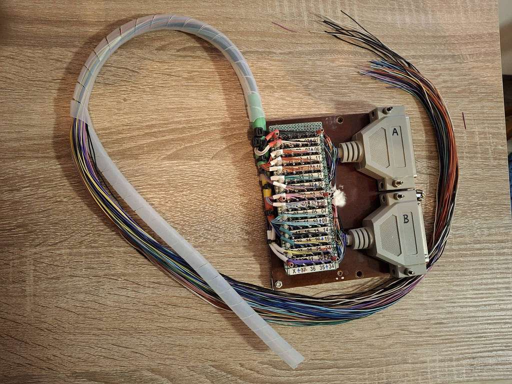 Auf deren Unterseite sieht man die angelöteten Leitungen, die zu einem Kabelstrang gebündelt wurden,