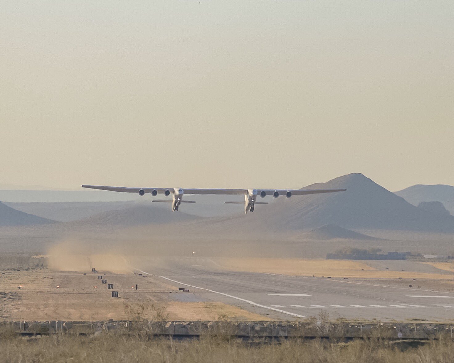 n-tv.de hat einen Artikel zum Jungfernflug. Neuer gigantischer Riesenflieger - Stratolaunch hebt erstmals vom Boden ab.