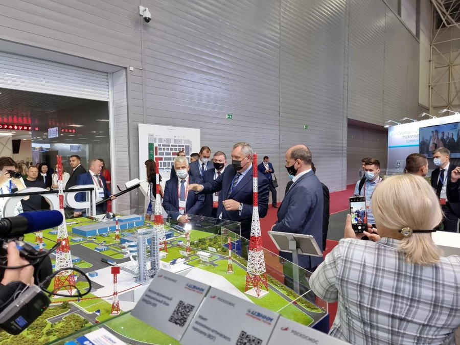 In der Ausstellung zeigt Rogosin Modelle der Angara-Familie, die von hier aus umweltfreundlicher als ihr Vorgänger, die Proton, starten soll.