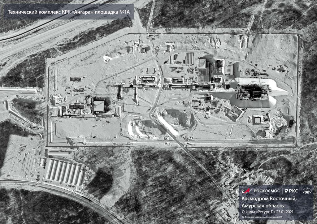 Bei Roskosmos sind im Zusammenhang mit dem Bau des Startkomplexes für die Angara-Familie aktuell zwei Bilder erschienen, auf denen die Bauwerke dargestellt und bezeichnet worden sind.
