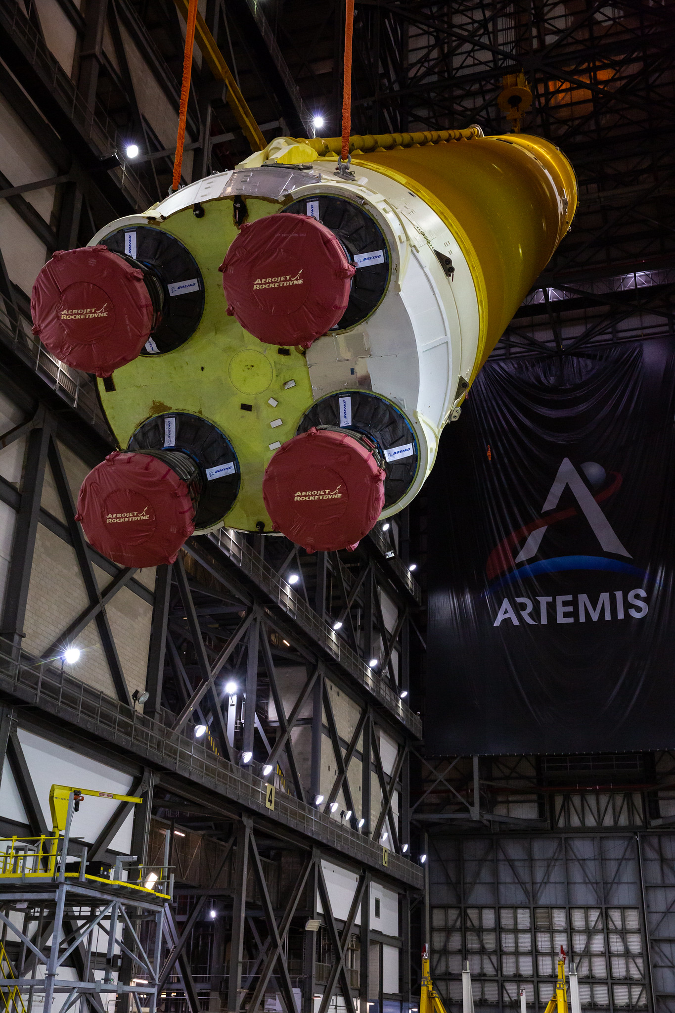 Quelle: https://spaceflightnow.com/2021/06/23/interstage-adapter-installed-on-space-launch-system/