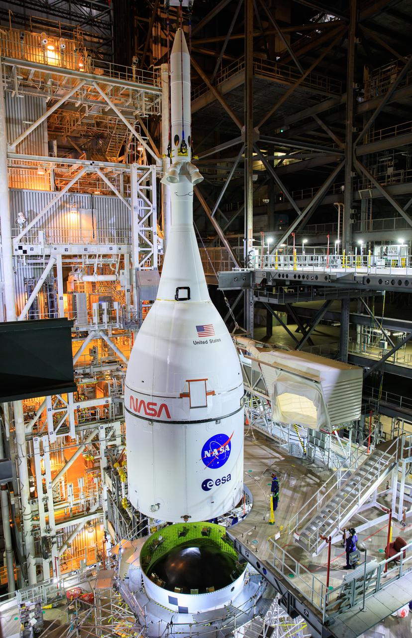 Den NASA-Tweets nach müsste jetzt auch die endgültige Sicherung/Befestigung des Raumschiffs auf dem SLS vollendet sein...