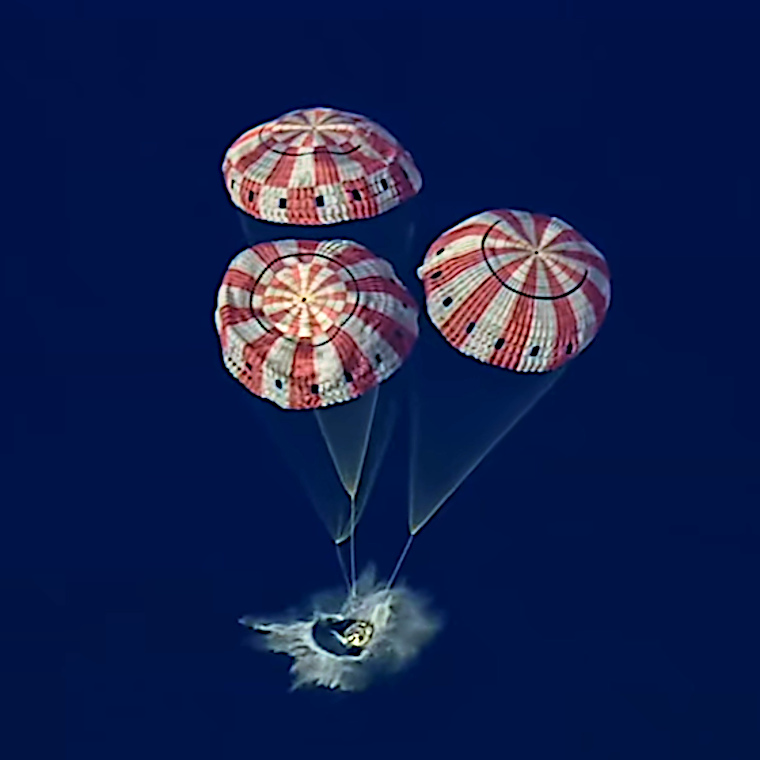 Die Besatzung der NASA-Mission Artemis II ist mit ihrem Raumschiff Orion wieder auf der Erde gelandet. Sie hat um 02:07 Uhr MESZ vor der Küste von San Diego im Pazifischen Ozean erfolgreich eine Landung mit Fallschirmunterstützung vollzogen.