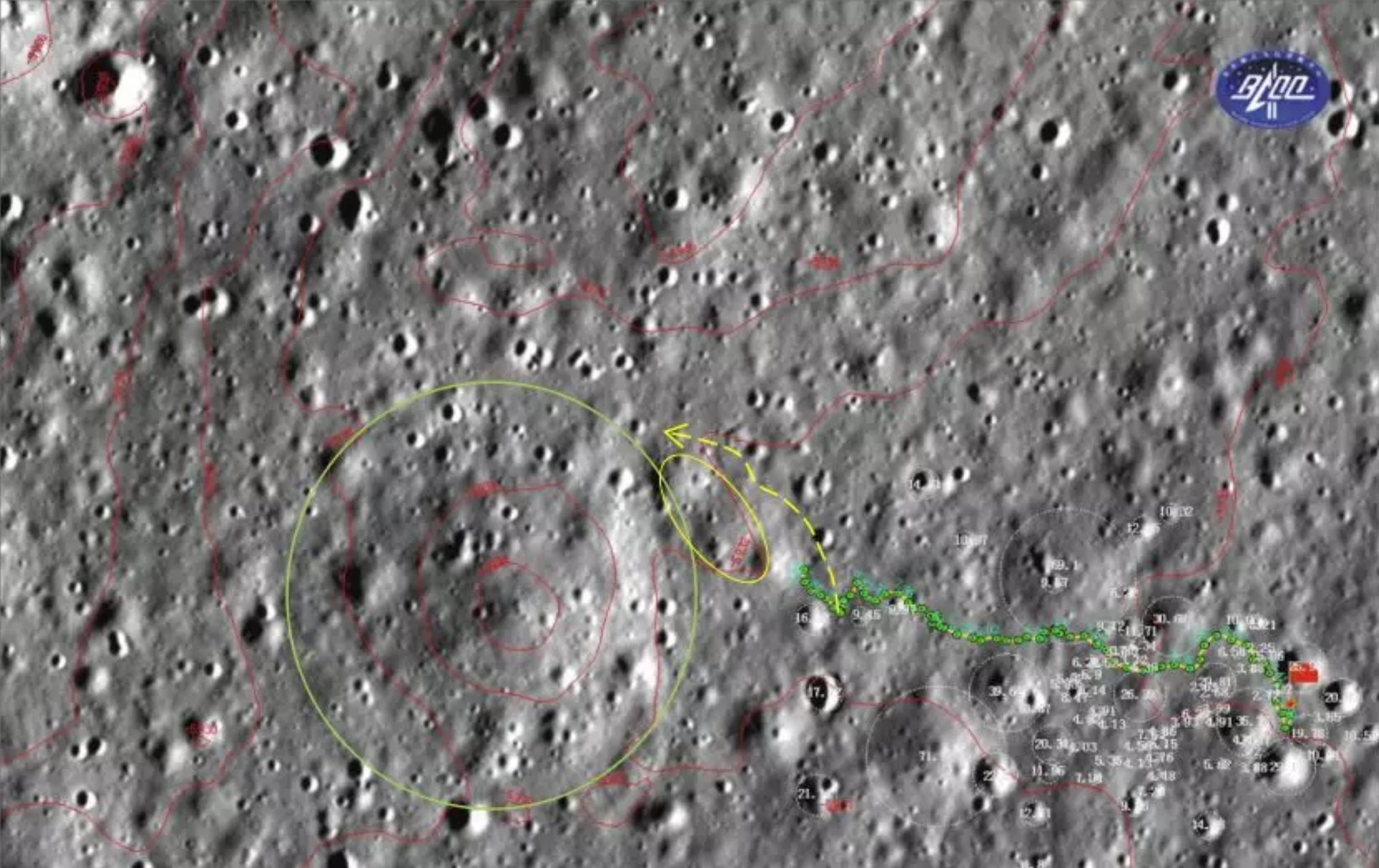 400 Meter sind bisher erreicht. Exakt schreiben die Chinesen das so: 399,788 Meter. Das man sogar bis zu 3 Stellen nach dem Komma exakt kommt, erstaunt. Jedenfalls sind der Lander und Rover heute in die 15. Mondnacht gegangen, die Zeit wird genutzt für die exakte Datenanalyse und weitere Fahrweg-Planung.