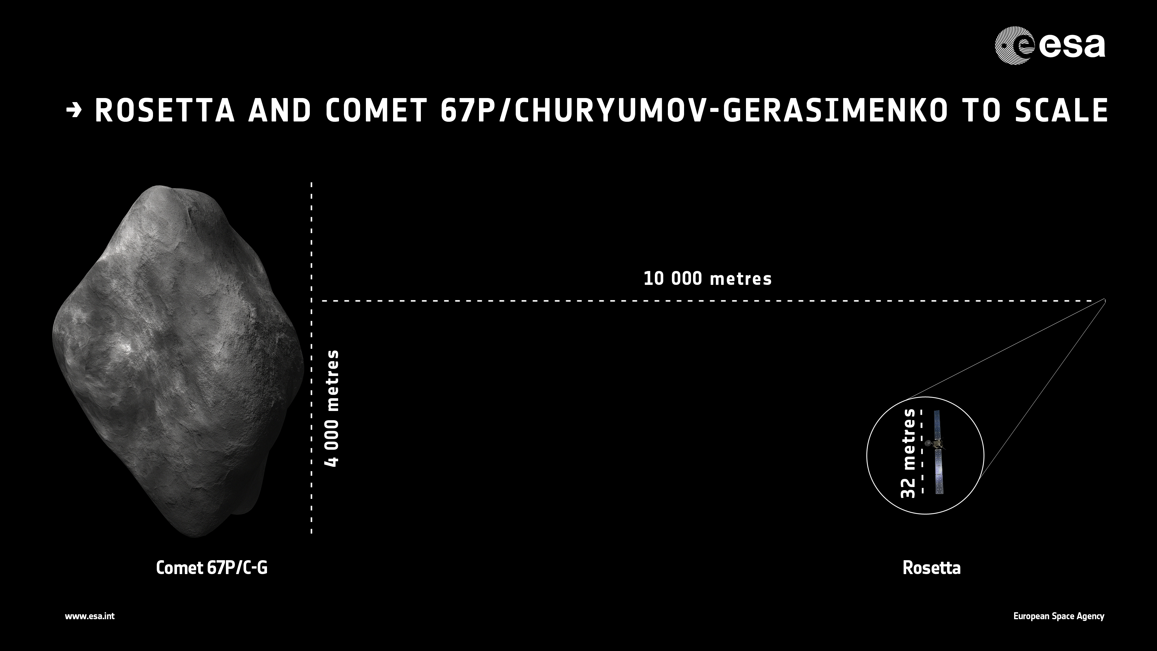 Rosetta ist 32 Meter breit, der Komet ist 4000 Meter breit.