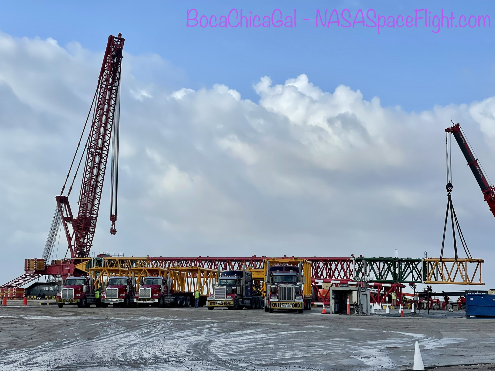 Was die hier auf der Baustelle mit dem LR 11000 von Buckner Heavy Lifting alles vorhaben muß man sehen, gibt ja neben dem groben OLIT Turmbau noch eine Menge andere Dinge zu tun, wie z.B. die "Fangvorrichtung" am Turm zu installieren, könnte mir denken die beginnen damit paralel, sobald der Turm die dafür nötige Höhe erreicht hat, damit´s schneller geht.