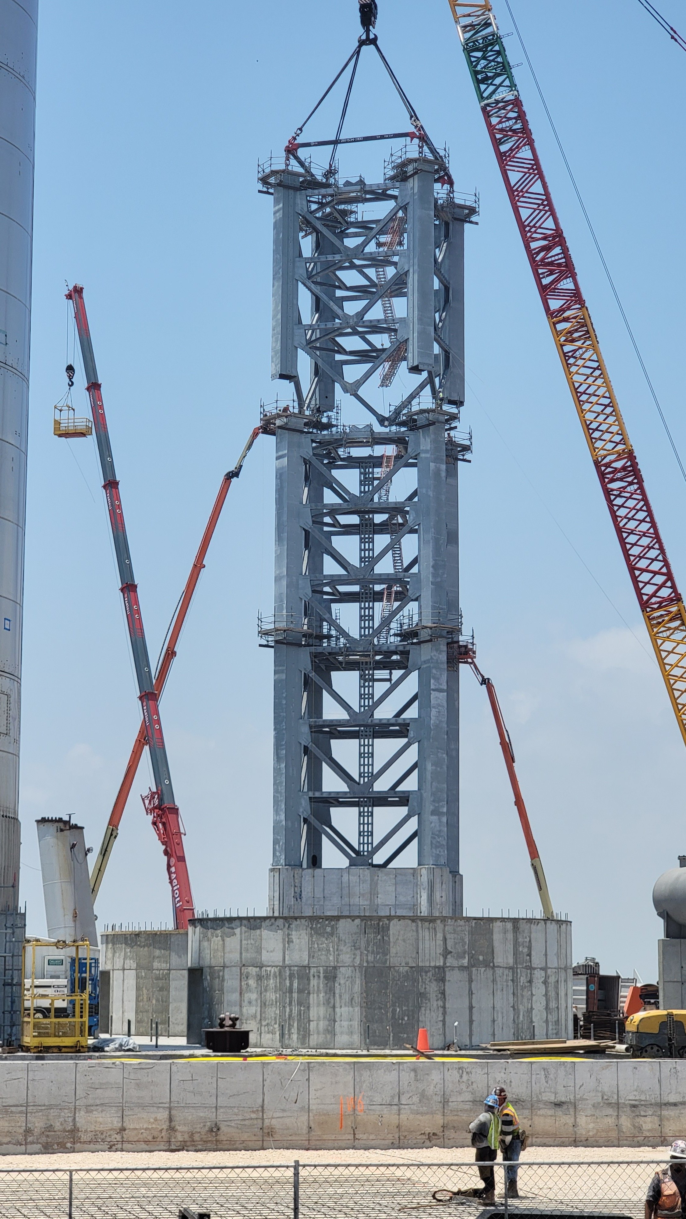 Gerade bringen sie "Kong" in Position um das 3. Turmteil heute hochzuheben und zu montieren.