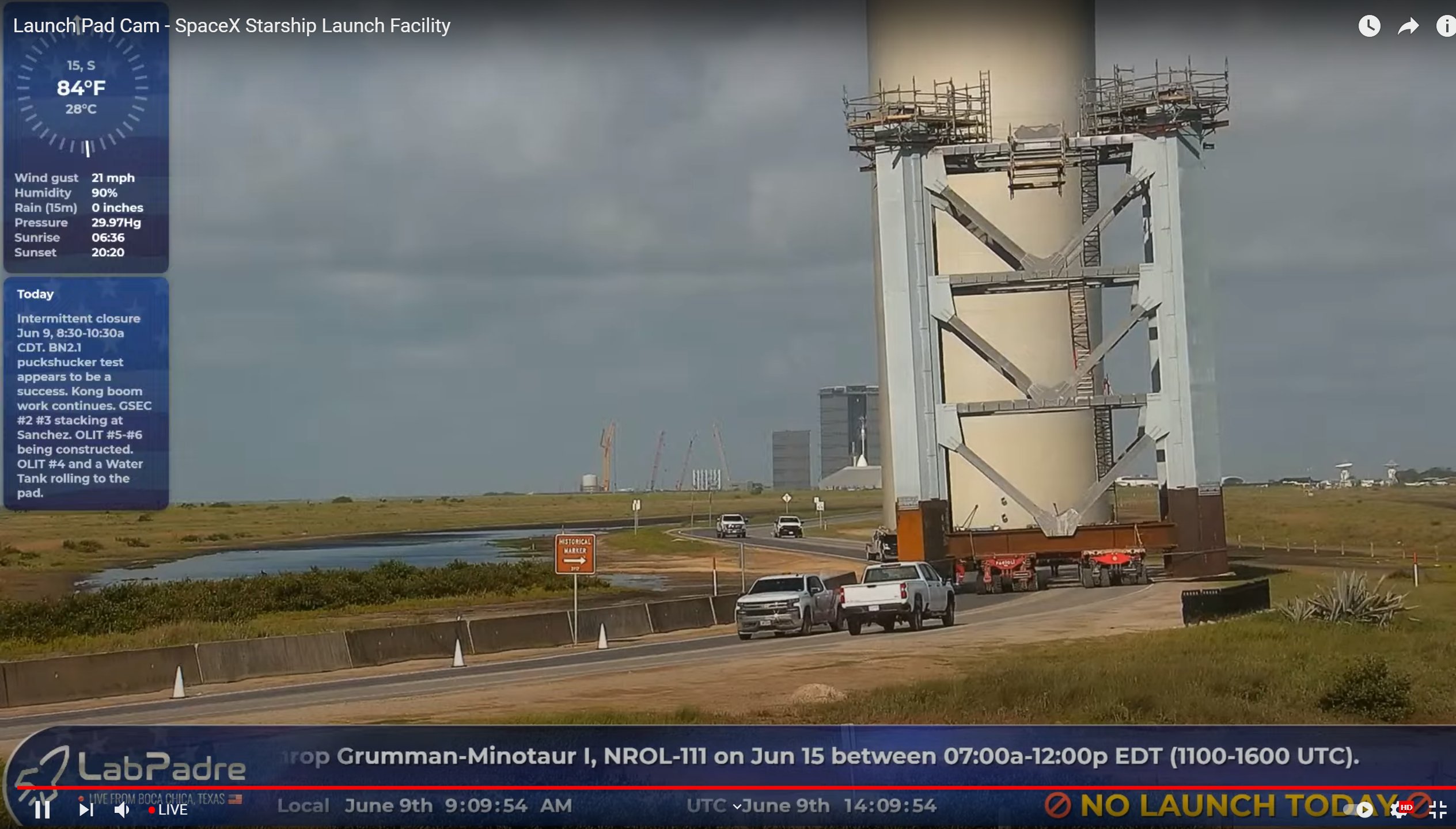 OLIT #4 steht zum Transport bereit, vermutlich gehts pünktlich um 19:00 Uhr MESZ los.(Strassensperre geht von 12:00 bis 22:00 Uhr Ortszeit)