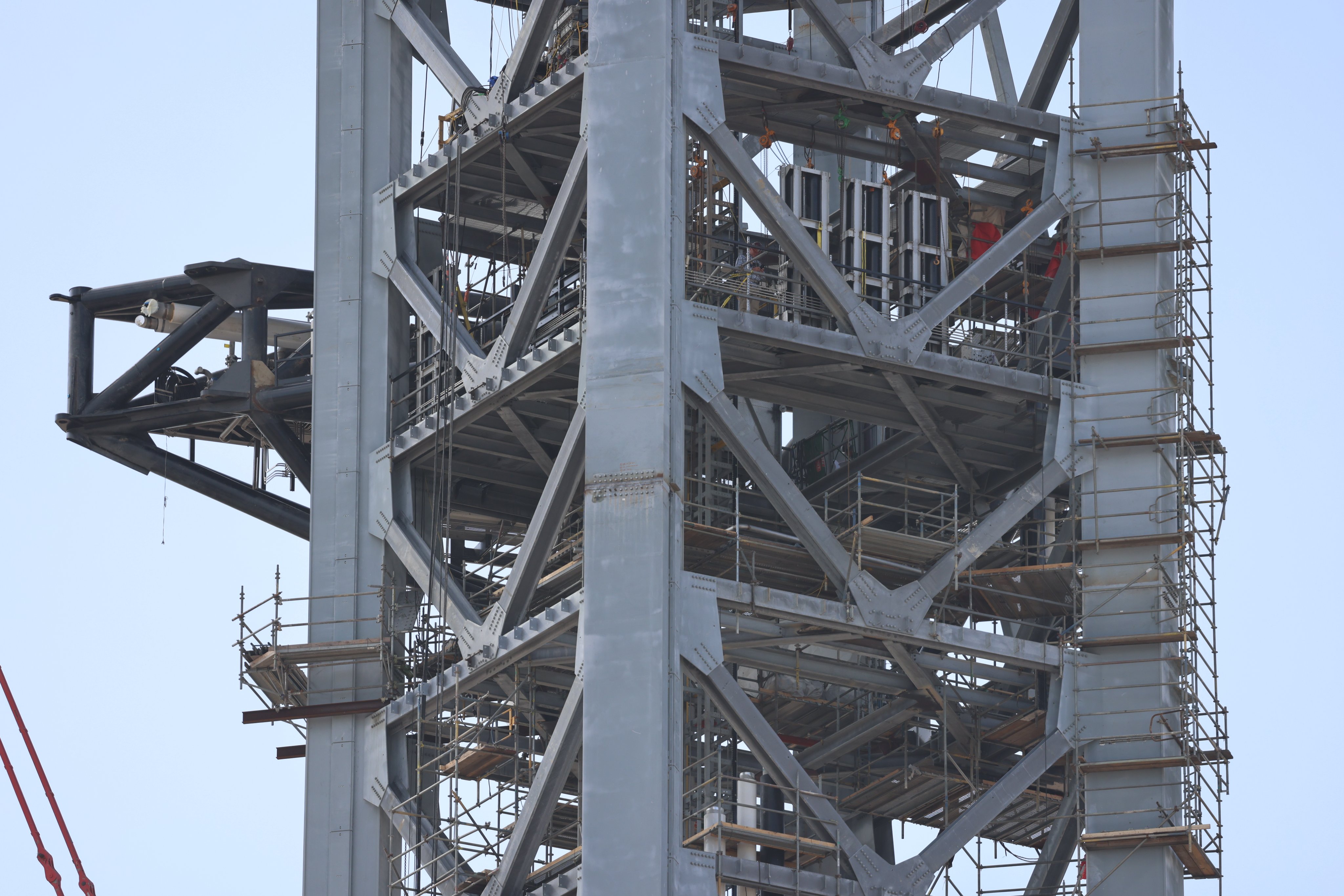 Soweit ich das verstehe, ist das nicht die Fangvorrichtung, sondern das Ende des Quick Disconnect Arms, welcher schon am Turm hängt. Damit wird das Starship auf dem Booster betankt und stabilisert. Zumindest die Beschreibung "QDA Extension" deutet darauf hin.