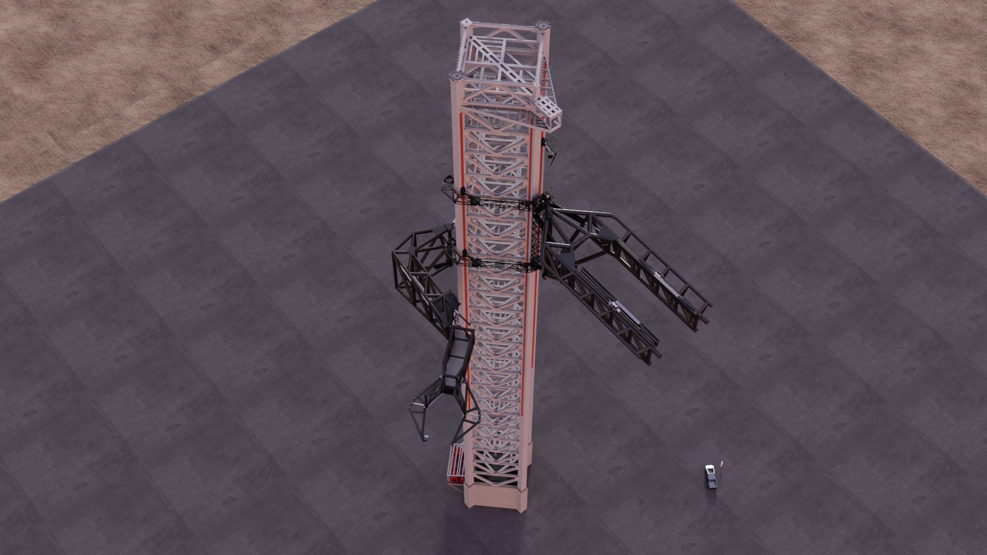 Und wie Mane schon schrieb - die größte Belastung hat die Konstruktion am oberen Knoten von Fangarmen und Haltekralle des Schlittens. Weswegen der obere Knoten auch sichtbar massiver ist als der Untere. Dazu kommt meiner Meinung nach auch noch, das der größte Teil der Lasten aus den Fangarmen, die in den Schlitten und dann in den Turm eingeleitet werden, über die Konstruktion der Fangarme auf die beiden Knoten verteilt wird - und der Gittermast zwischen den Haltekrallen eher sekundär für die Lastverteilung ist. Wie Mane auch schrieb, der Schlitten ist mehr für die Stabilisierung und nur zum Teil für die Lastverteilung/den Lastabtrag.