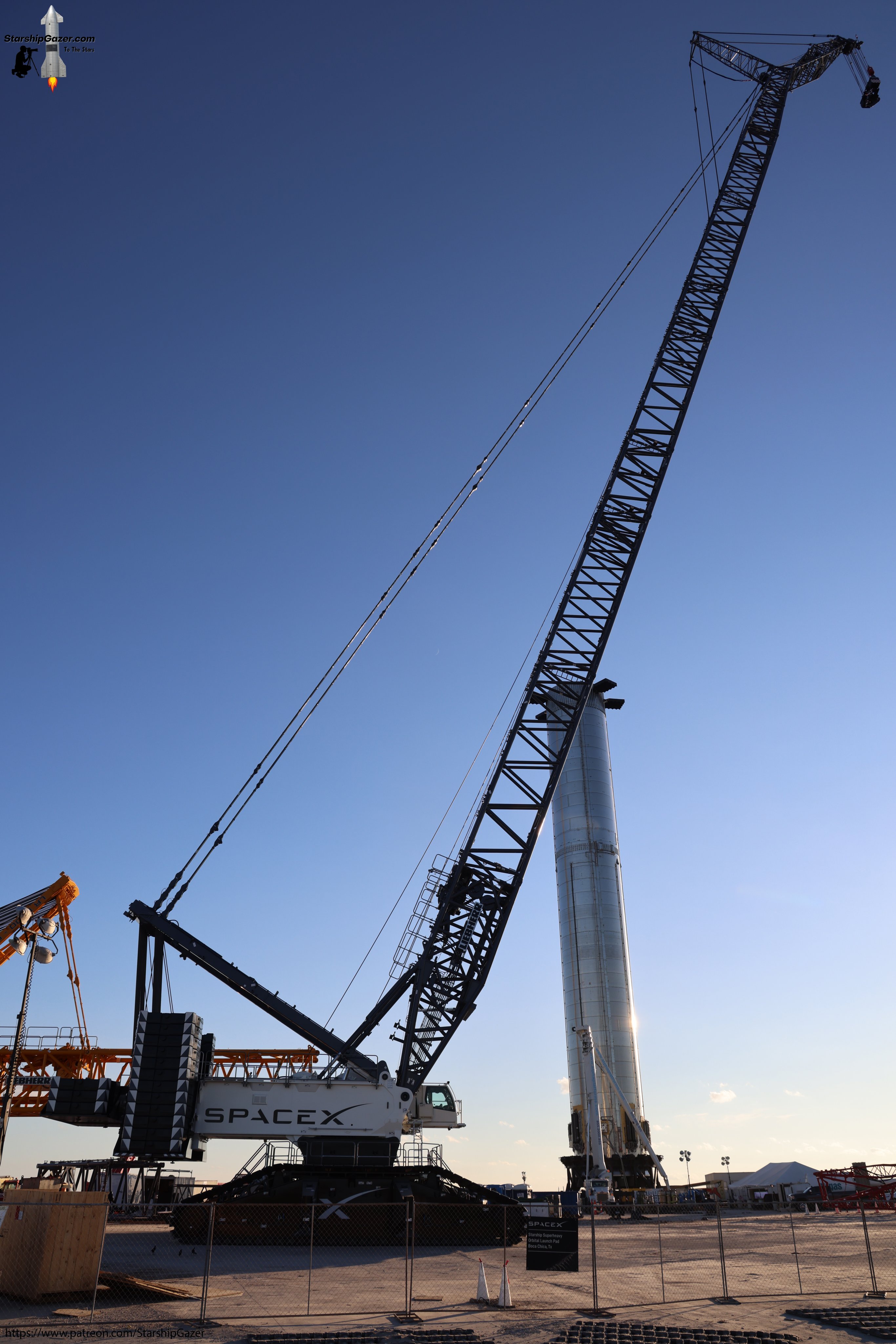 Momentan bringt mich zum grübeln, das neben dem SpaceX eigenen Liebherr LR 11000, heute ein weiteres großes Auslegeranlenkstück in gelb angeliefert wurde und in der Nähe vom LR 11350 abgelegt wurde P-I