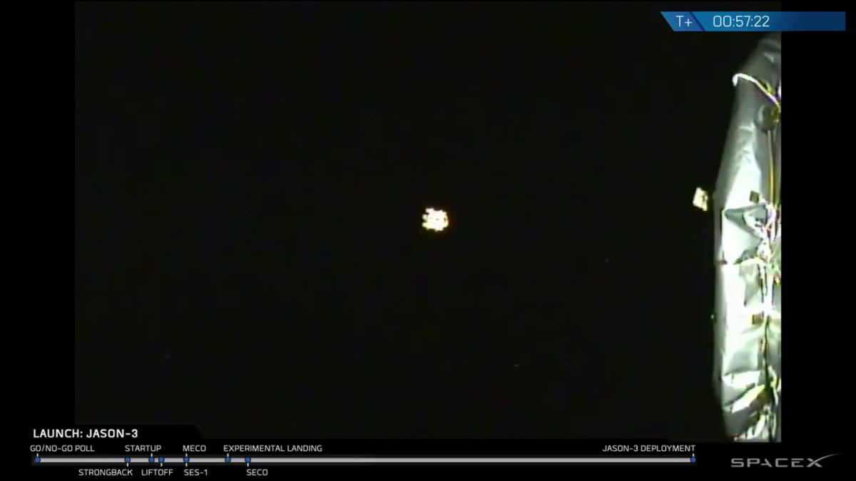 Zum Satelliten: Zwischenzeitlich konnte an Hand von Telemetrie von Jason 3 bestätigt werden, dass die Solarzellenausleger entfaltet sind und Strom erzeugt wird ("the satellite is power positive").