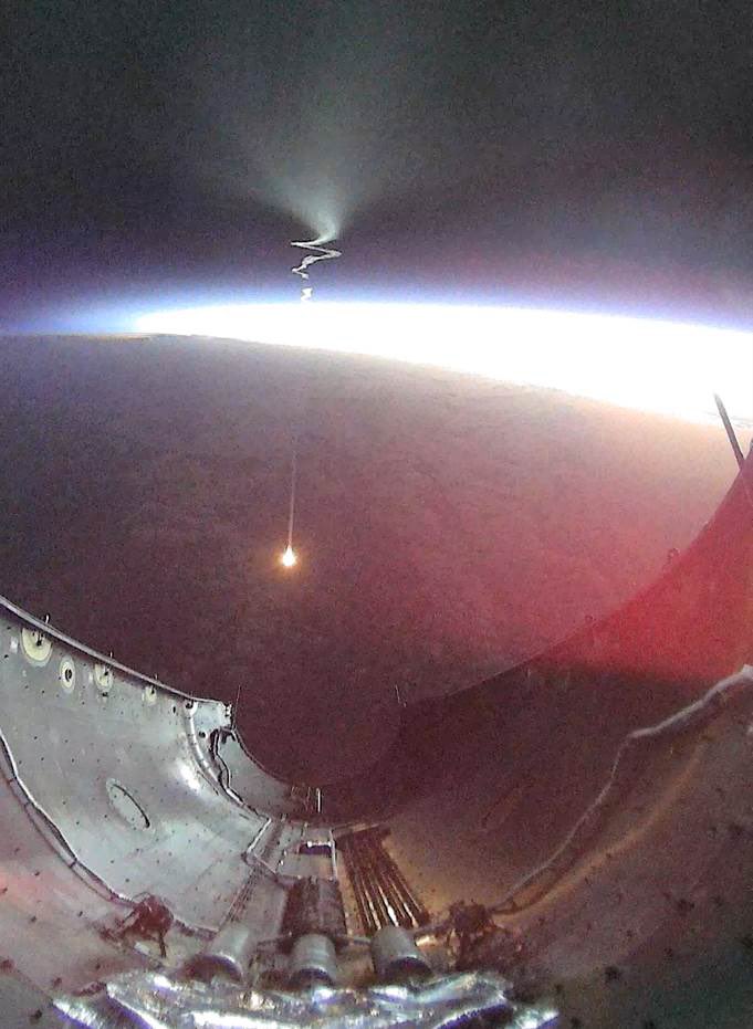 Aufnahme von einer Fairing aus gesehen vom Entry Burn der F9.