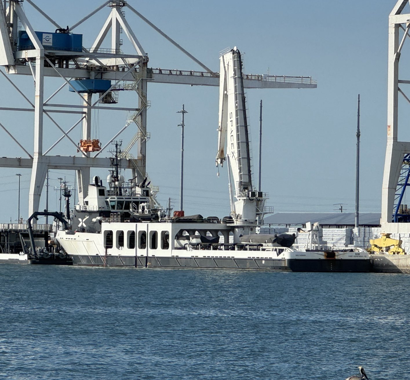 Ich esse direkt am Wasser zu Abend und von meinem Tisch aus kann ich sehen, dass das SpaceX-Schiff „Bob“ gerade mit den Verkleidungshälften vom Start, den wir am Sonntagabend gesehen haben, zurückgekehrt ist. Der Booster sollte bis morgen früh bei „Just Read the Instructions“ hier eintreffen.