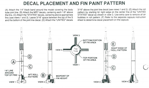 Der kleine Bogen stammt von indycals (www.indycals.com), der große von TangoPapaDecals (www.tangopapadecals.com). Beide enthalten umfangreiche Decals für das gesamte Man In Space Set, wobei bei  Tango Papa, da ich das große Set geordert hatte, auch Decals für den Space Shuttle Kit im selben Maßstab enthalten sind. 8)