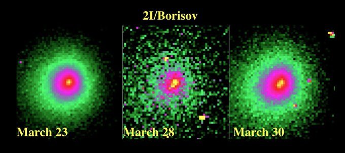 Hier neue Aufnahmen von 2I/Borisov, mit inzwischen prächtig entwickelter Koma :