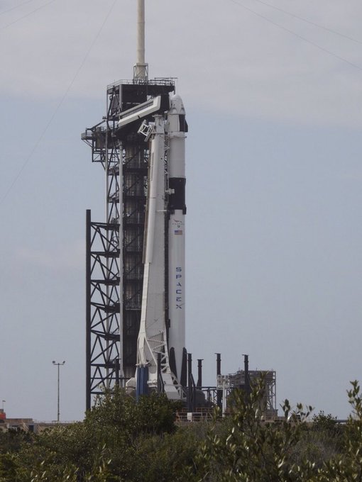 There we go.  Static Fire time today is 16:00 EST (21:00 UTC) of the #Falcon9 with the uncrewed #Dragon atop. #SpaceX #DM1