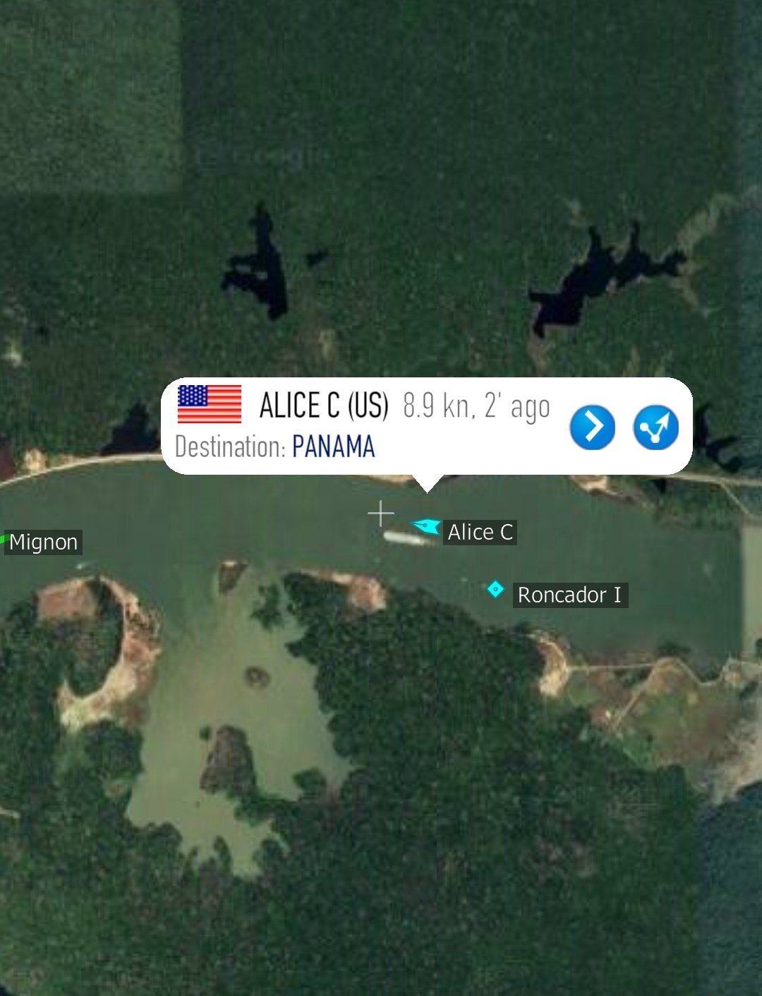 Alice C befindet sich jetzt in der ersten der zwei Miraflores-Schleusenkammern, sollte also demnächst auf einer Webcam auftauchen.