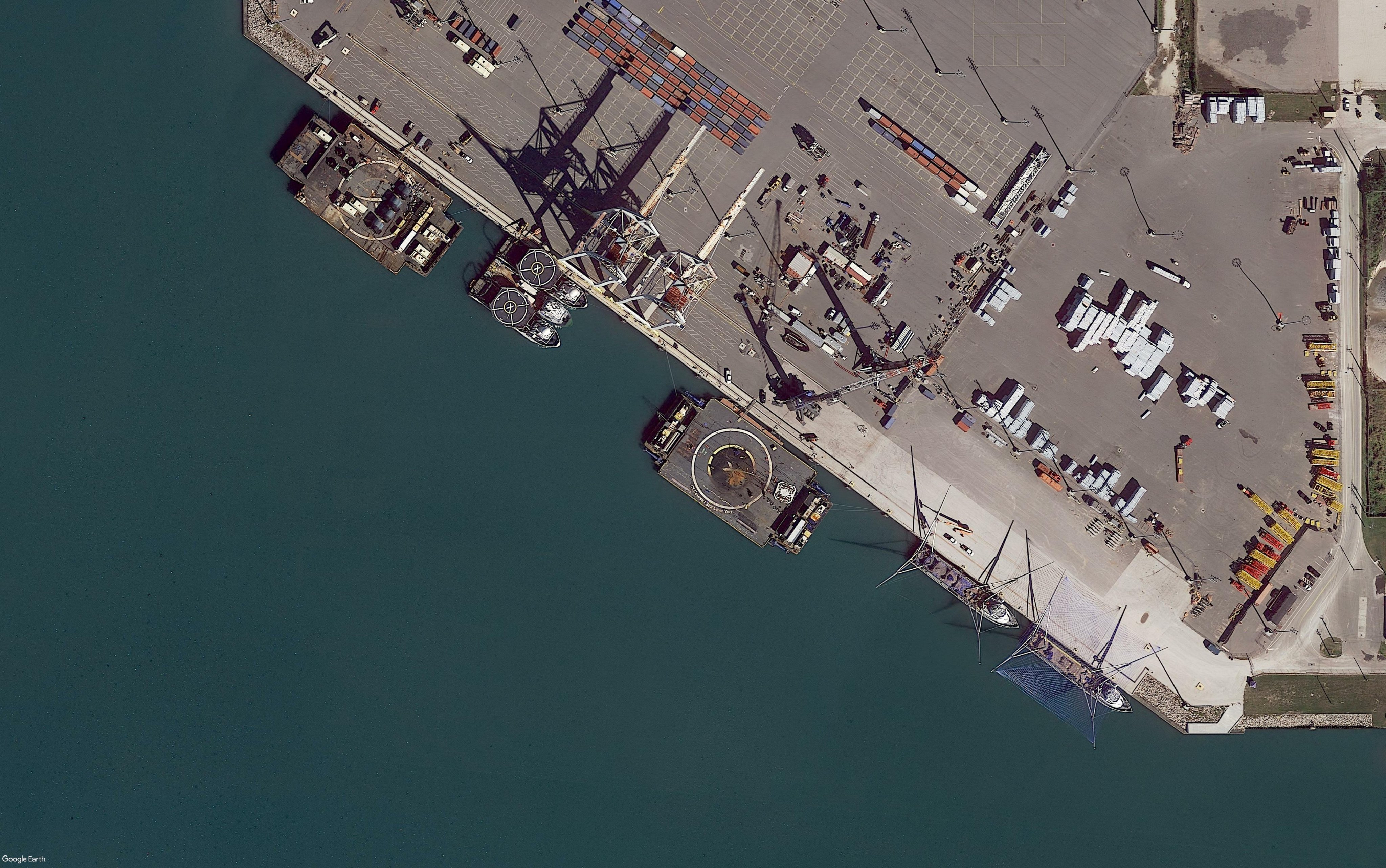 Ich hab versucht, es mir auf Google Maps selbst anzusehen, die Bilddaten, die mir für die entsprechende Stelle angezeigt werden, zeigt allerdings keines der Schiffe. Nichtsdestotrotz, ein hübsches Bild