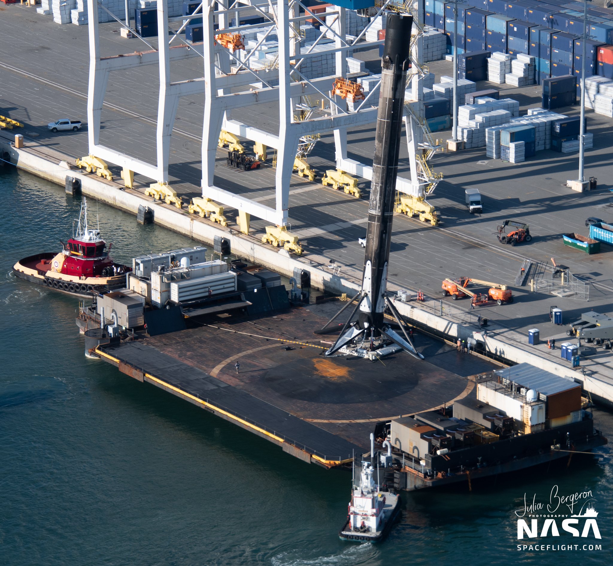 Geniales Bild. Da ist ja echt alles drauf zu sehen. Incl. Octagrabber, ein aufgespanntes Netz, ne Fairinghälfte, ne Falcon am Kran, der alte (mittlerweile umgebaute) NASA-LKW um die Rakete liegend zu Transportieren und auch die neuen Antriebe für die Bargen sieht man.
