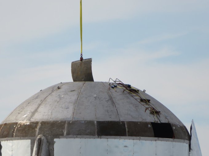 Ich tippe (ohne zu wetten ;) ) dass der Rest des "Hoppers" direkt auf den unteren Teil aufgebaut wird. Auch wenn er später wieder abnehmbar wird. Diesmal stabiler als ein Zeppelin.