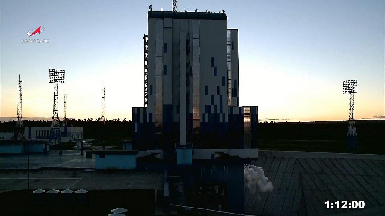 Heute, am 28.06.2021,  01:00 MSK (07:00 Ortszeit -00:00 MESZ) ist die Rakete  «Sojus-2.1b» mit der Oberstufe «Fregat» und 36  OneWeb Satelliten aus dem MIK-RN des Technik-Komplexes auf Wostotschny herausgerollt worden.                       Quelle, Fotostrecke: RZ"Wostotschny"/Roskosmos