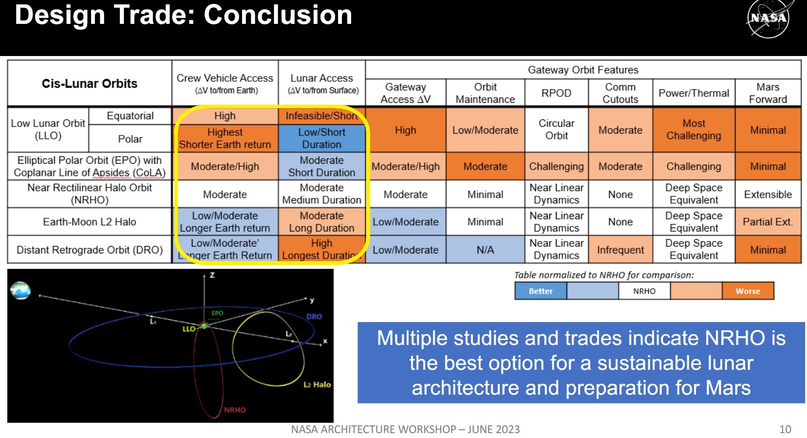 Der NRHO ist aus der Dynamik gesehen, schon gut. Aber ob dort ein Gateway fliegen muss, ist eine andere Frage.