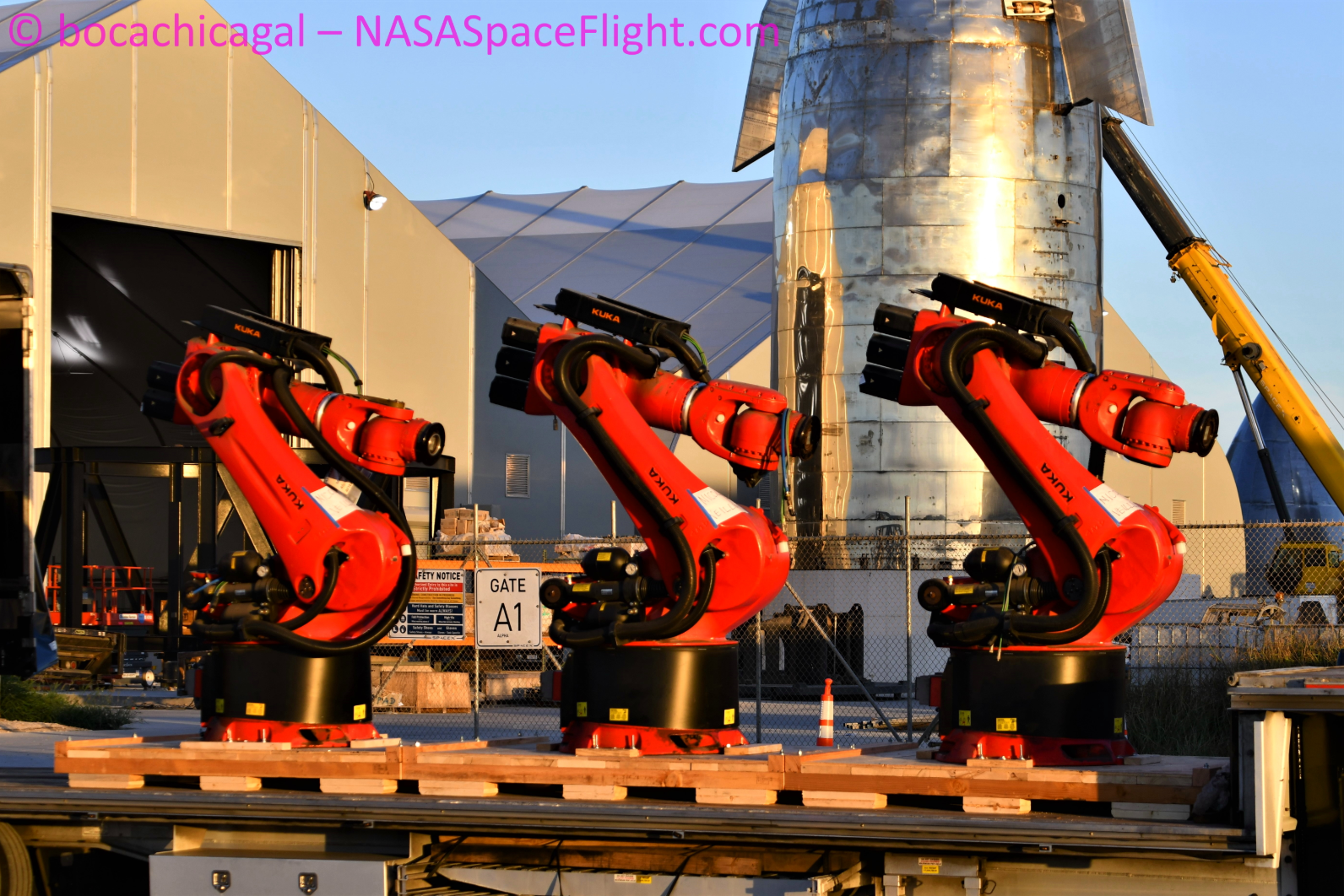 Es geht weiter voran in Boca Chica. Jetzt sind Schweißroboter angeliefert worden. Auch ein neuer Raptor wurde angeliefert. Alles zu sehen im neuesten Video. Die Videos und Bilder stammen wie immer von Mary (@BocaChicaGal).