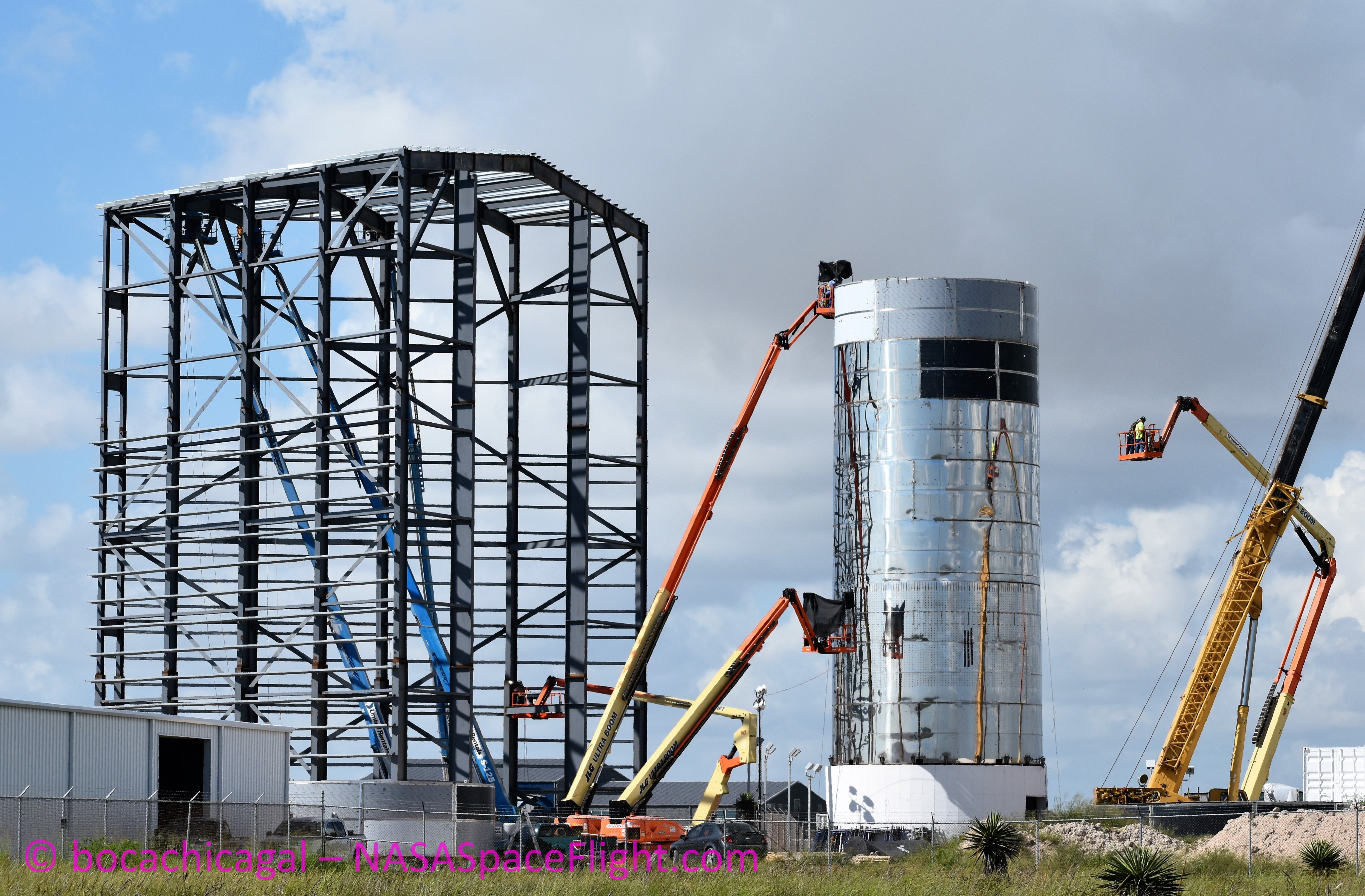 Es gibt weitere Fortschritte, weitere Zelte und nahezu fertige Stahl-Außenchassis für Starship MK1 und Superheavy.