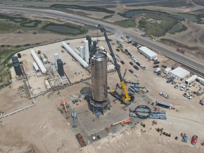 Die sind mit SN5 wirklich fix. Auf dem Gelände stehen bereits mehrere Elemente mit drei Ringen bereit. Es würde mich nicht wundern, wenn das Ding bereits Ende nächster Woche komplett zusammengesetzt ist.