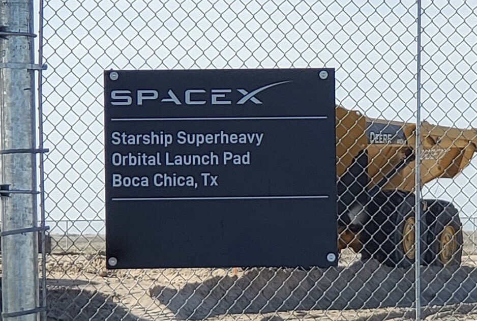 Der massive Kran soll anscheinend das Superheavy Pad bauen. Bin gespannt, wie lange es dauert, bis das zweifelsfrei erkennbar wird. Das Gelände ist es jedenfalls und das Schild dafür ist schon eine Weile am Zaun.