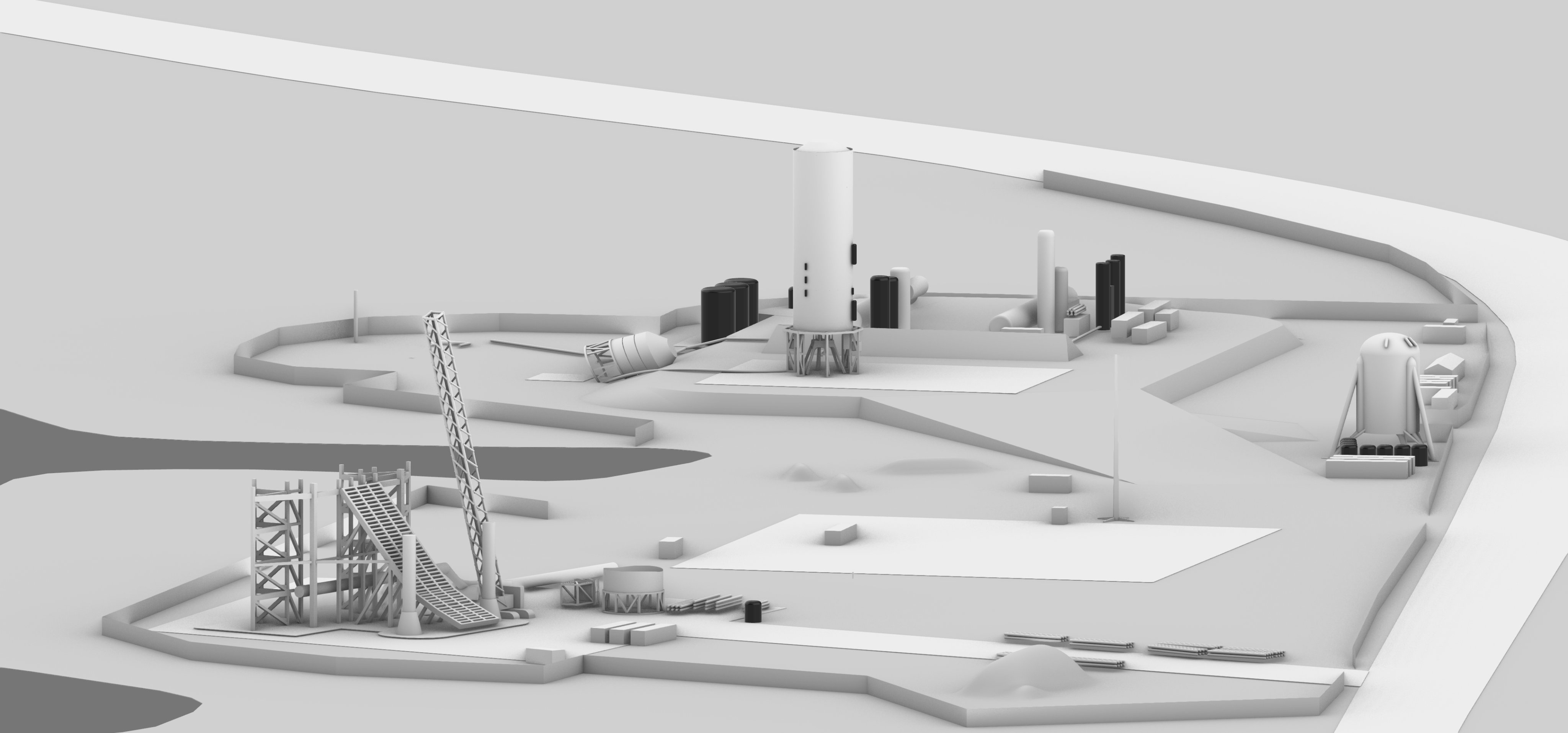Das ist das Pad so wie es zur Zeit in Florida, LC-39A aussieht. Vielleicht halb fertig. Mal sehen, wie es fertig aussehen wird. Gerüchteweise wird die abgebrochene Arbeit in Florida bald wieder aufgenommen.