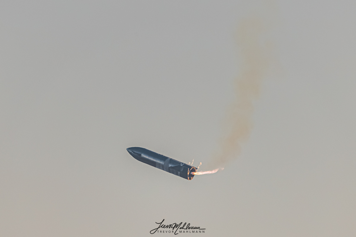 - Farbveränderungen der Triebwerke: Verlust von Treibstoff aus der Nase gem. E.Musk. Schlechte Verbrennung -> Fehlschlag