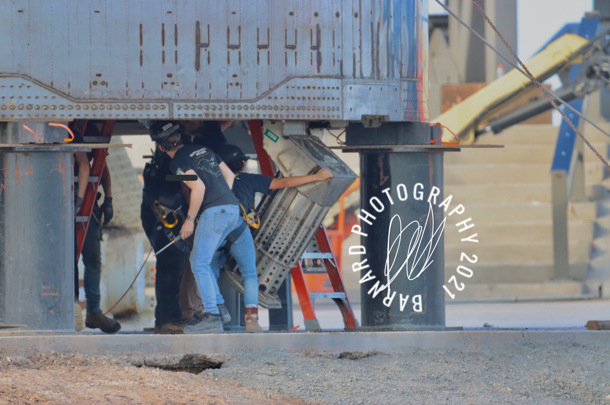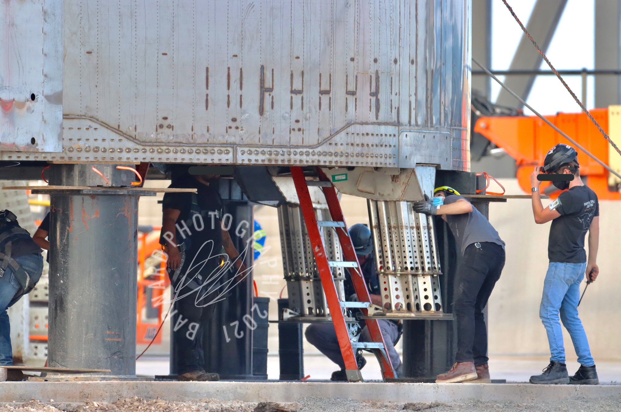Kurz bevor SN11 auf die Startrampe gesetzt wurde, haben SpaceX-Mitarbeiter jedes einzelne Landebein heruntergelassen. Im Gegensatz zum SN10-Flug wurden sie getestet und entfalten sich dieses Mal hoffentlich richtig.