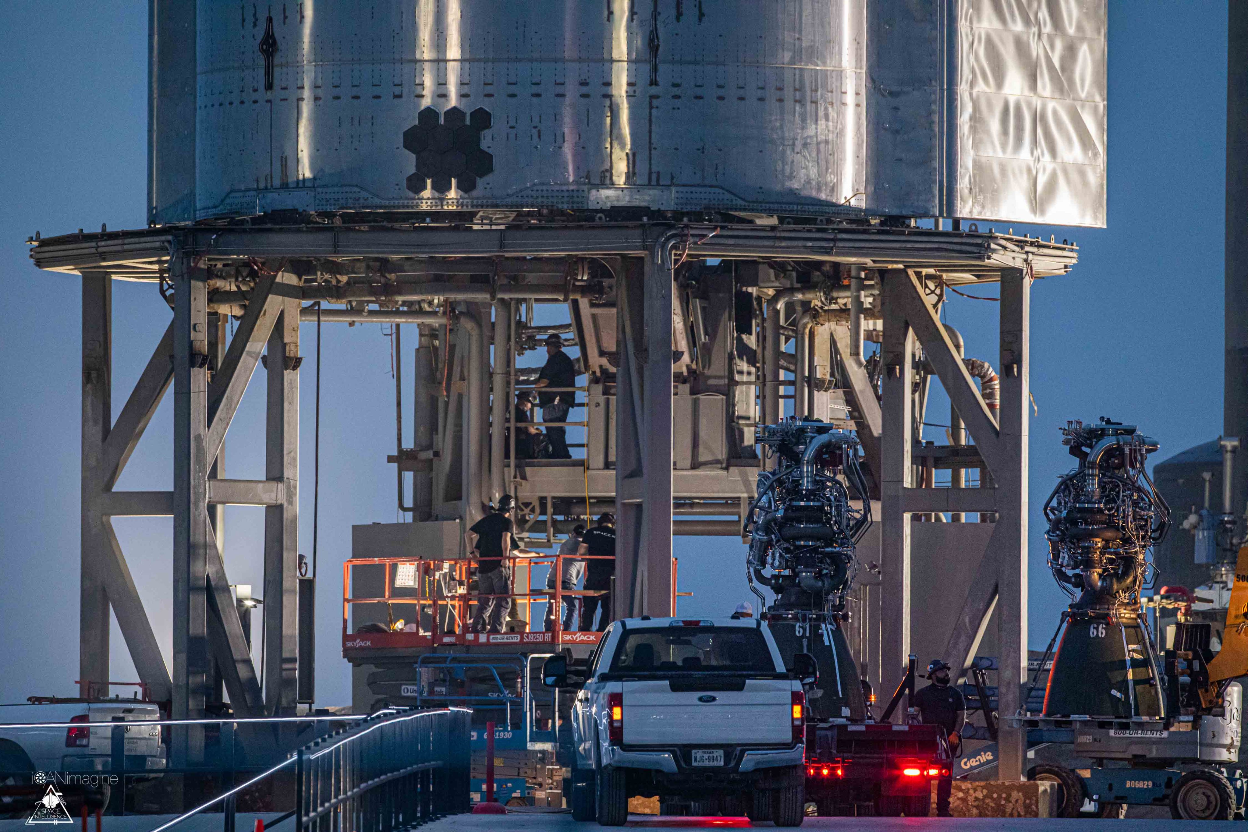 In der nacht wurden 2 Raptoren in SN15 eingebaut, der dritte wurde wieder abtransportiert.