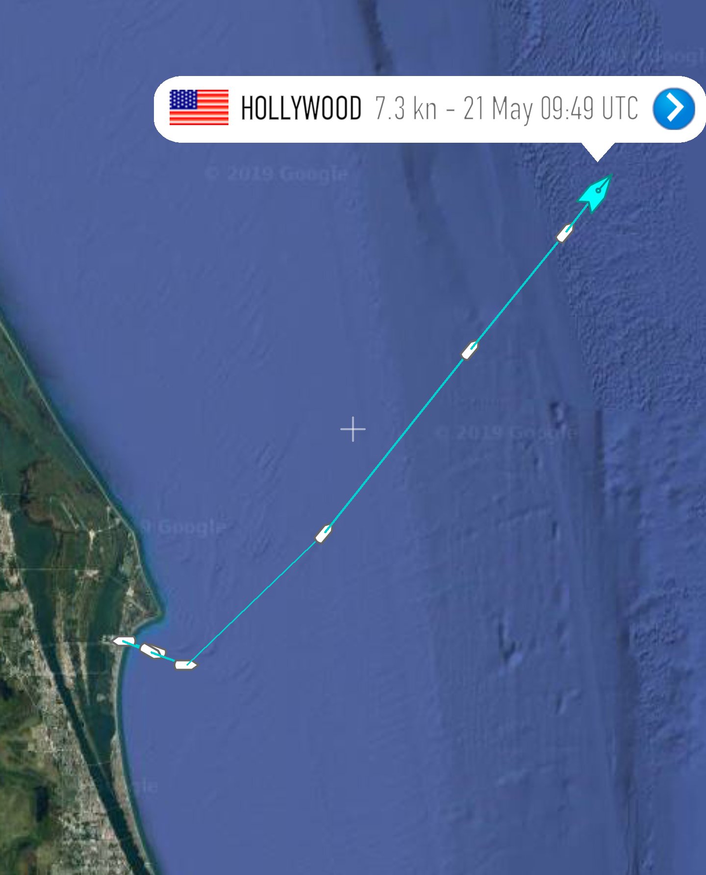Und nun mit Vollgas 7.3 Knoten unterwegs in Richtung Landeposition.