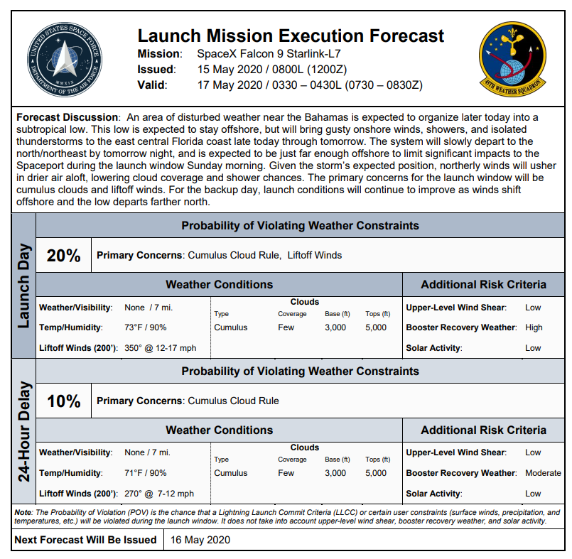 Start jetzt frühestens am Dienstag um 09:10 MESZ wegen des Tropischen Sturmes. Die Schiffe haben sich bereits aus der LZ zurück gezogen.