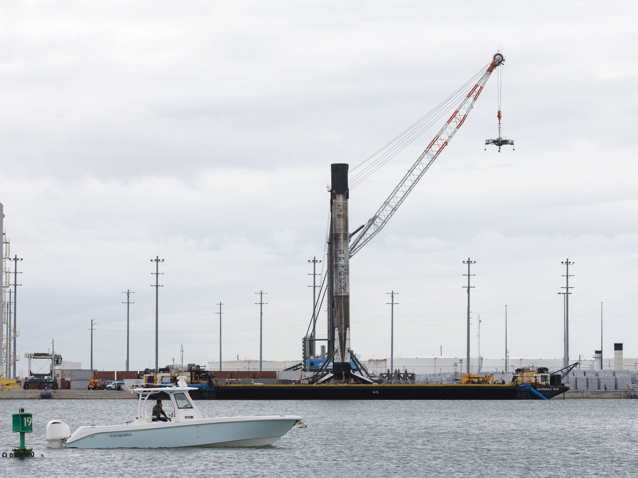 Der Booster ist mittlerweile wieder zurück im Port Canaveral.