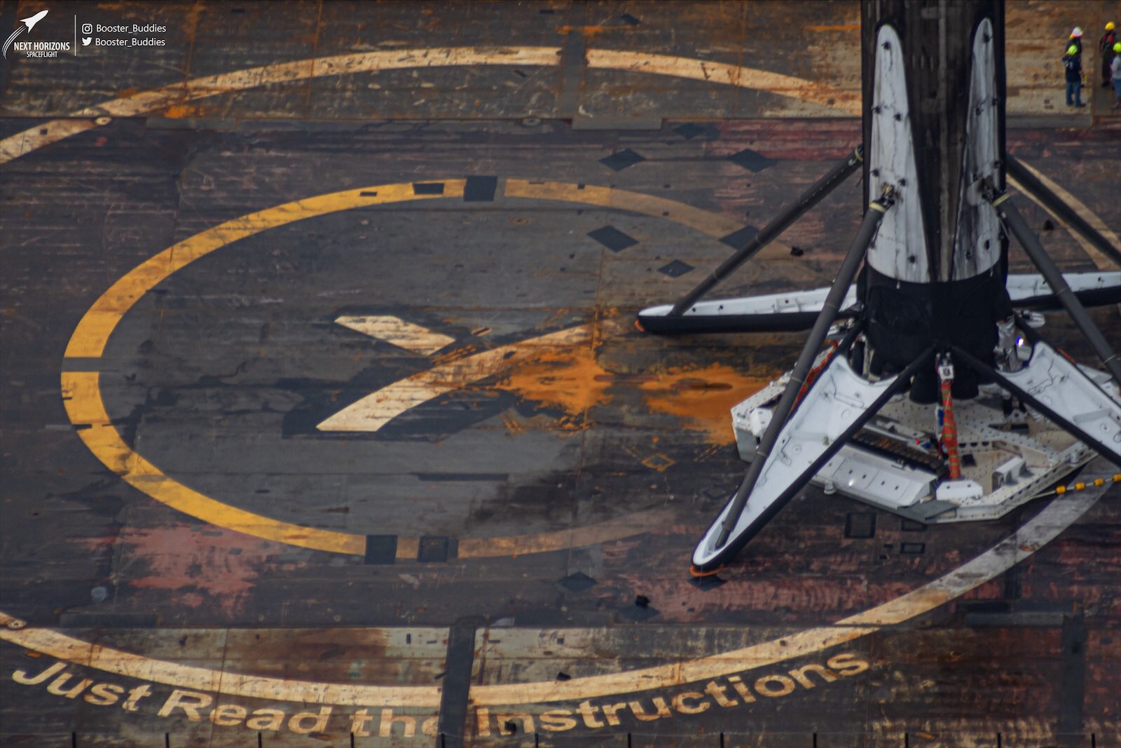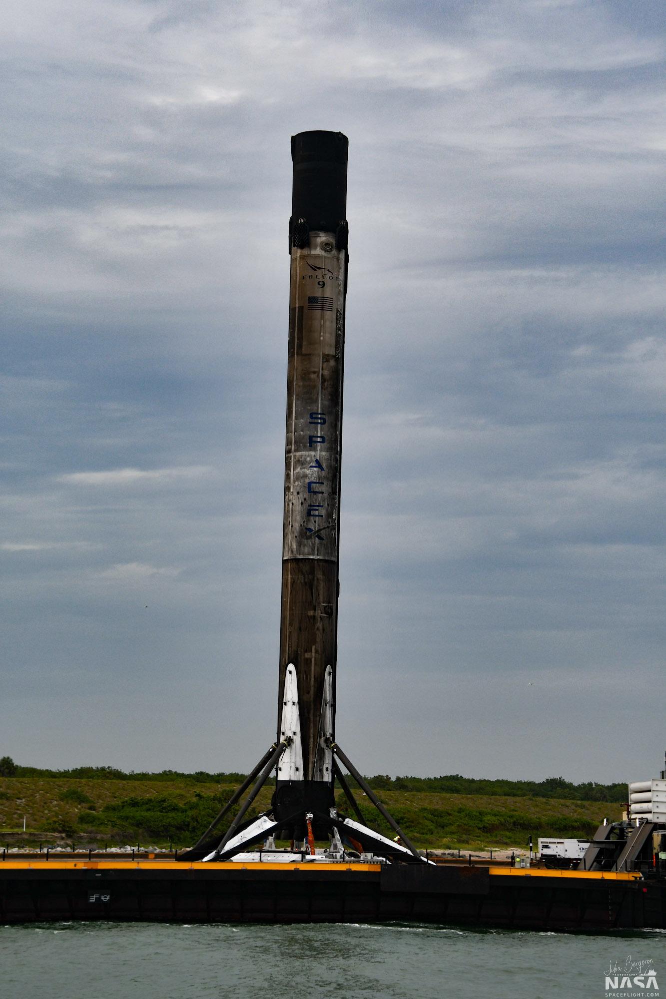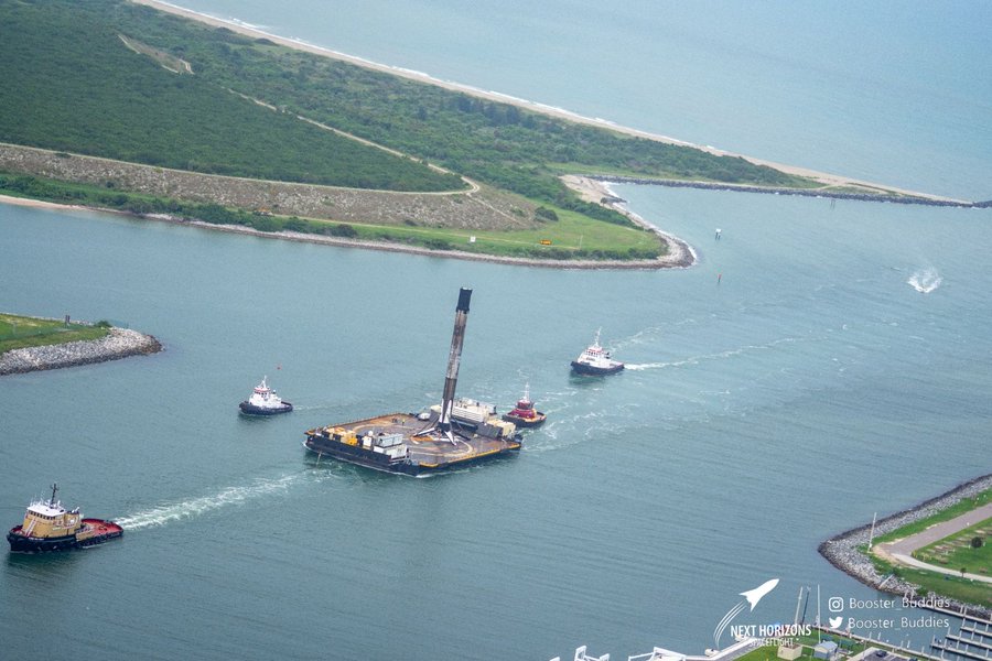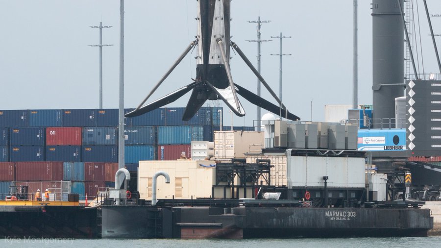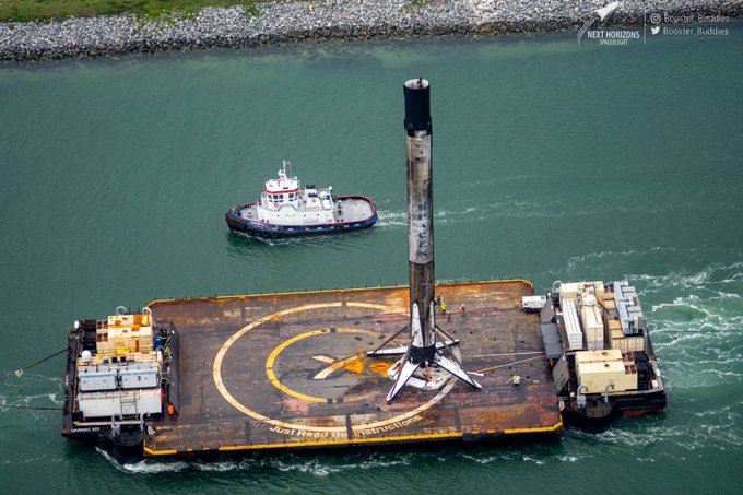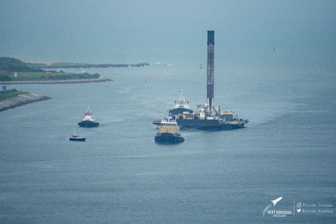 Für die Frage ist es noch  zu  früh. Vor 9 Stunden wurde das Foto gepostet, auf dem war der Booster auf dem Weg in den Hafen. Das war somit am Sonntag um  20 Uhr Ortszeit.