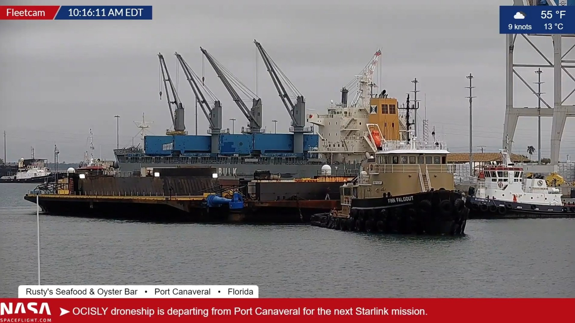 "Der Schlepper Finn Falgout startete heute Morgen um 5 Uhr mit Of Course I Still Love You und leitete damit offiziell die #Starlink V1 L22 Launch-Kampagne ein."